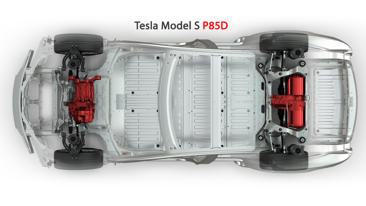 The current Model S is a rear-wheel-drive car with one motor. The ‘D’ will have two motors – one powering the front wheels and one powering the rear wheels.
